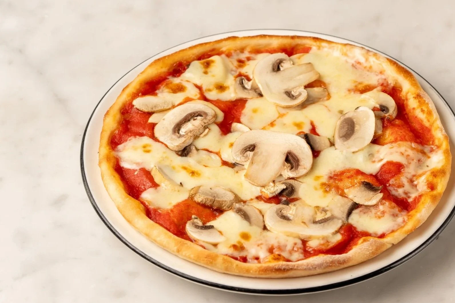 Tomato sauce, mushroom and mozzarella.