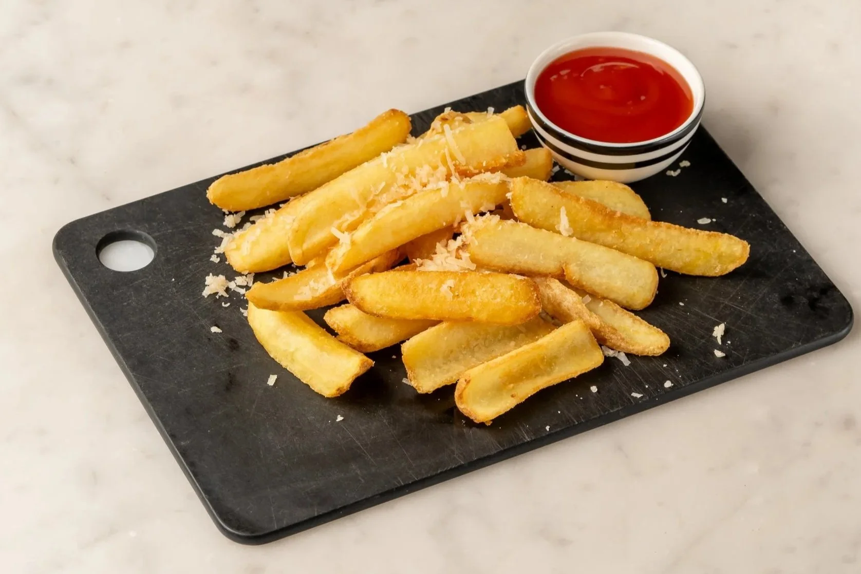 Potatoes with grated Parmesan. Served with mayonnaise or ketchup.