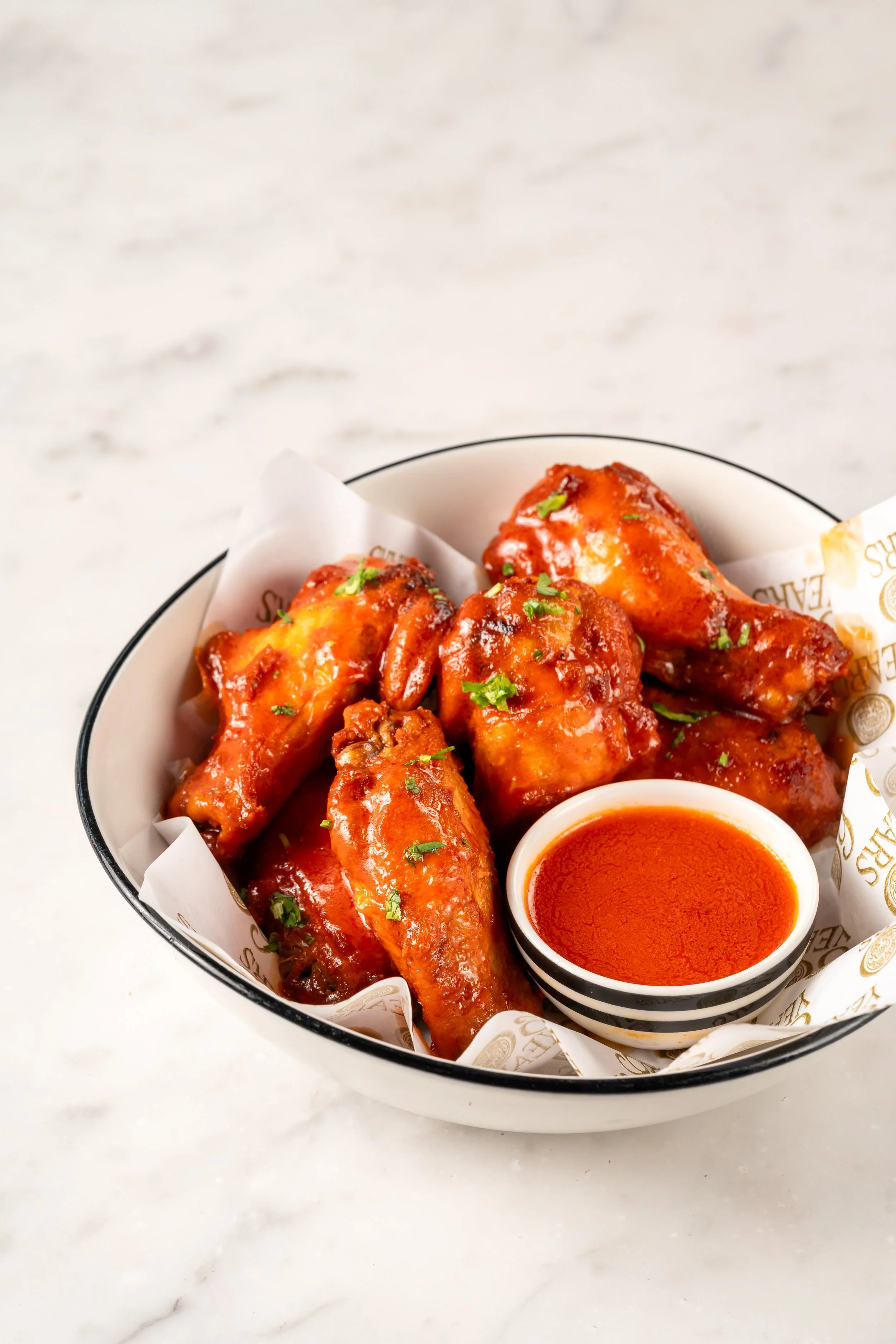 A platter of chicken wings with your choice of 3 dips. Served with mixed crudités and cocktail dip.