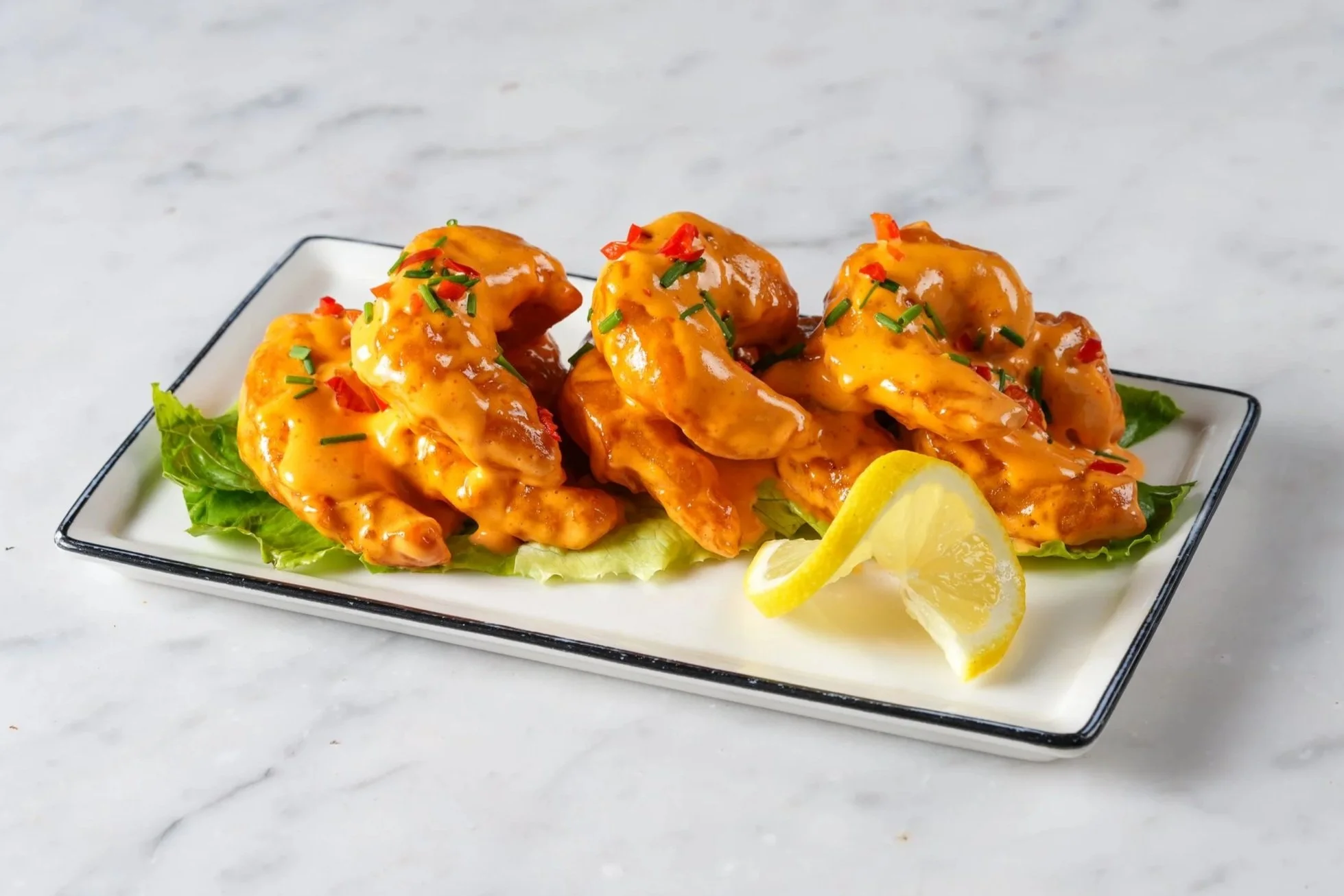 Breaded calamari rings served with lemon wedge and pesto mayo.